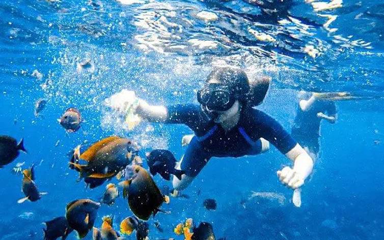 Gamat Bay Beach in Nusa Penida is a hidden gem known for its crystal-clear waters, vibrant coral reefs, and peaceful atmosphere. Surrounded by dramatic cliffs, this small bay offers excellent snorkeling and diving opportunities, with abundant marine life including colorful fish and sea turtles. Its untouched beauty and quiet setting make it a perfect spot for travelers seeking a more natural and less crowded escape.
